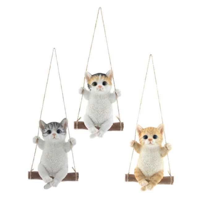 オーナメント スウィングキャット ( 置物 ガーデンオーナメント 猫 ガーデニング ディスプレイ 飾り ブランコ スイング 掛ける 引っ掛ける リアル 玄関 エントランス 庭 ガーデン 雑貨 インテリア 庭飾り オブジェ )