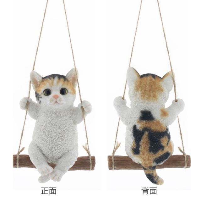 ブランコに乗る姿がかわいらしい猫のオブジェです。お庭やお家の中でぶら提げるとゆらゆら揺れて楽しそうです。きれいな仕上げで、まるで生きているかのような表情が特徴で、癒されること間違いなしです。お庭のアクセントとしてはもちろん、玄関やお部屋のインテリアとして飾っていただくことで、ペットのいるような暮らしを楽しめます。
