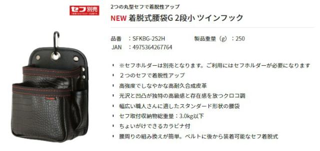タジマ 着脱式腰袋G 2段小 ツインフック SFKBG-2S2H TJMデザイン 267764 ’