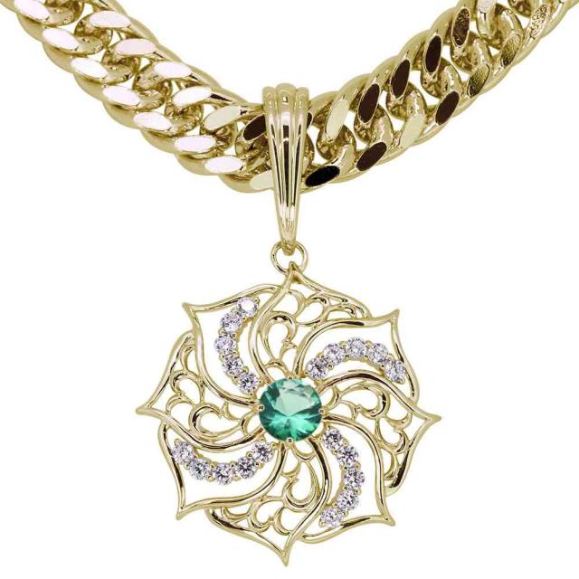 18金 ネックレス メンズ ダイヤモンド 18k ゴールド 喜平 誕生石 5月 エメラルド ペンダント