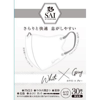 日翔 彩 SAI 3D 立体カラーマスク ホワイト×グレー ふつう30枚(個包装)