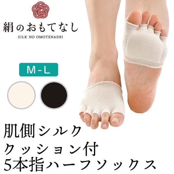 送料無料 絹のおもてなし 肌側シルク クッション付 5本指 クッションパッド 足まめ対策バンド ハーフソックス 日本製‐カバーソックス つま先ソックス つま先カバー 蒸れにくい インナーソックス 5本指靴下 MIKASA 三笠