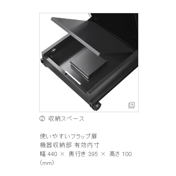 | 機器収納部 | 耐荷重:10kg以下 有効内寸目安:幅 440 × 奥行き 395 × 高さ 100 (mm) |