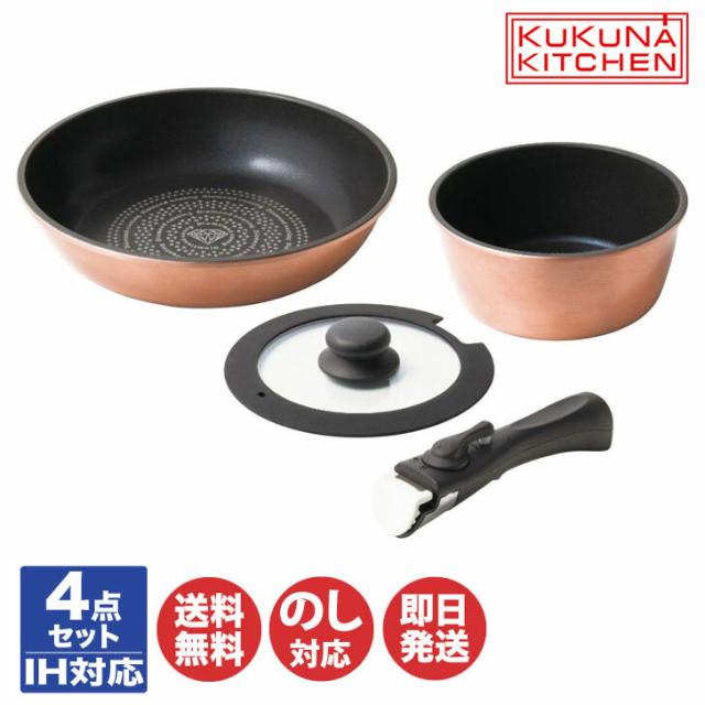 KUKUNA KITCHENククナ ダイヤモンドコート 着脱鍋 4点セット B(KKN-DC4TNB) IH対応【セット 着脱式 フライパン コーティング 鍋 ガス IH 軽い 軽量 収納 結婚祝 内祝 新築祝 プレゼント ギフト】