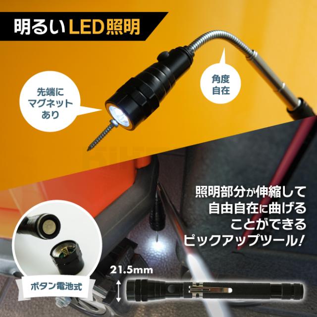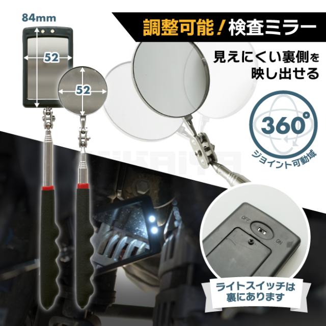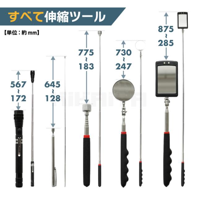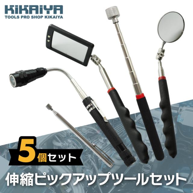 マグネット ピックアップツール 5個セット 伸縮式 検査ミラー LEDライト ピックアップ ロッドメカニックツール 車 メンテナンス ネジ 隙間 KIKAIYA