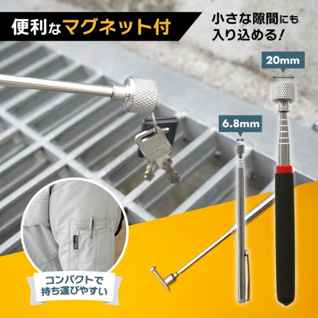 メンテナンス補助に!あると便利なツールセット ●マグネットで金属をピックアップできるツールと、検査ミラーの計5点セット ●すべてのツールが伸縮式です ●ピックアップツールは、ボルトやワッシャーなどの小さな金属部品を効果的に ピックアップでき、 手が入らない小さな隙間に入り込みます ●検査ミラーは接続部が360°回転し、自在に調整できるので見えにくい裏側まで確認で きます ●電池ボタン式のLEDライトは、暗い車のエンジンルームでも明るく照らせます ●メンテナンスのほか、日常生活など幅広い用途で活躍できます 品番:MH-21 |
