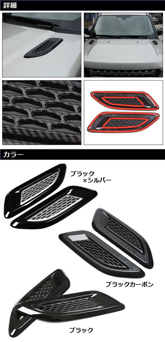 ダミーダクトトリム ブラック ABS製 ランドローバー 汎用 入数:1セット(2個) AP-XT1937-BK ダミーダクトダクトカバー ダクトトリム ボンネットダクト ボンネットスクープ ■参考適合車種 LAND ROVER ディスカバリースポーツ ディスカバリー4 ディスカバリー5 ディフェンダー レンジローバー レンジローバースポーツ レンジローバーイヴォーク レンジローバーヴォーグ レンジローバーヴェラール フリーランダー2 エンジンフード エンジン ボンネットフード ボンネット フード フロント ボディ ボディー ダミー フェイク ガーニッシュ カバー エアロ エアインテーク インテーク ベント エアベント 空気口 エアーダクト エアダクト 4570107618423 フェイクダクト サイドダクト フェンダーガーニッシュ フェンダーカバー フェンダーダクト トリム フェンダー エアフロー エアーフロー サイド メッキ メッキパーツ 黒 BLACK エクステリア 外装パーツ パーツ エクステリアパーツ ドレスアップ カスタム カスタマイズ アクセサリー アクセサリ アクセント 装飾 ステッカー デカール automobile motorcar オートモービル モーターカー カー 車 自動車 車両 505803890