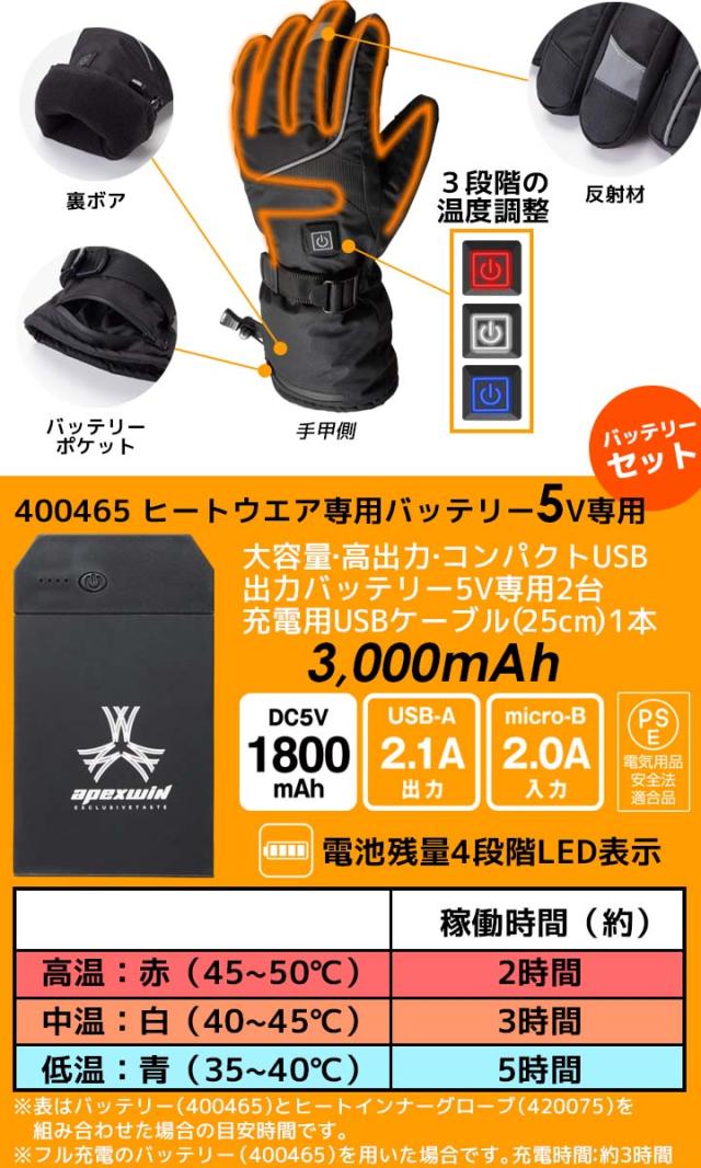 ダアタックベース ヒートグローブ バッテリーセット 420075 防寒手袋