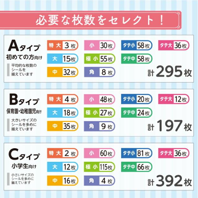 | シール枚数 | Aタイプ(初めての方向け)295枚 |