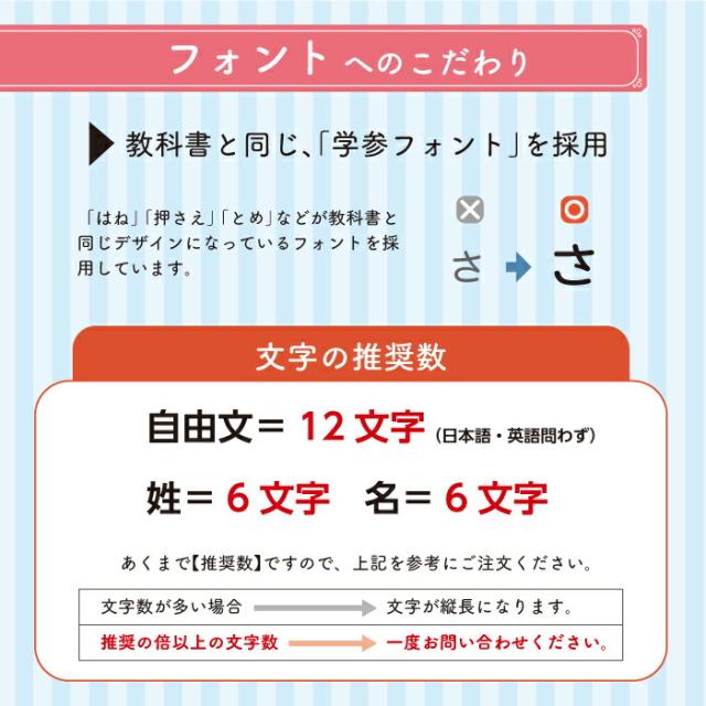 文字の配置等は当店規定のフォーマットで行っております。文字間など細かい部分の調整はお受けいたしかねます。
