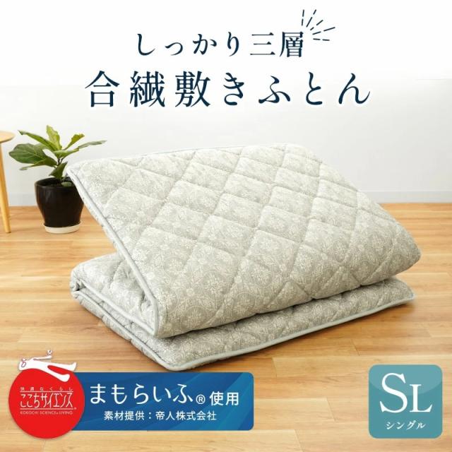 敷き布団 シングル 日本製 約100×210 厚み10cm 帝人 まもらいふ 素材使用 三層構造 通年 合繊敷き布団 シングルロング