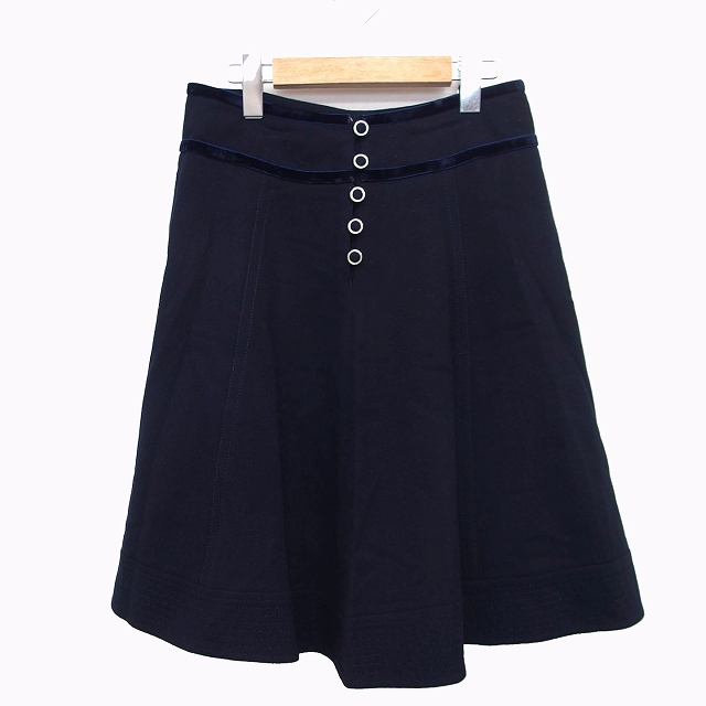 【中古】ユナイテッドアローズ UNITED ARROWS フレア スカート 膝下 無地 ベロア ライン ウール 毛 38 ブラック 黒