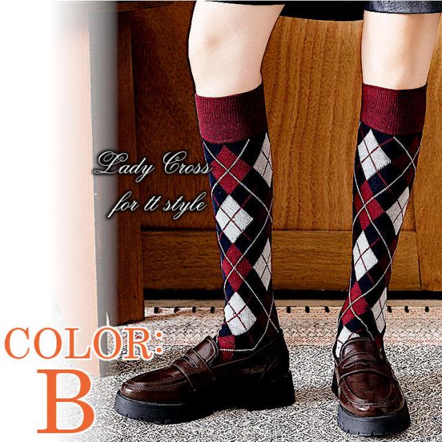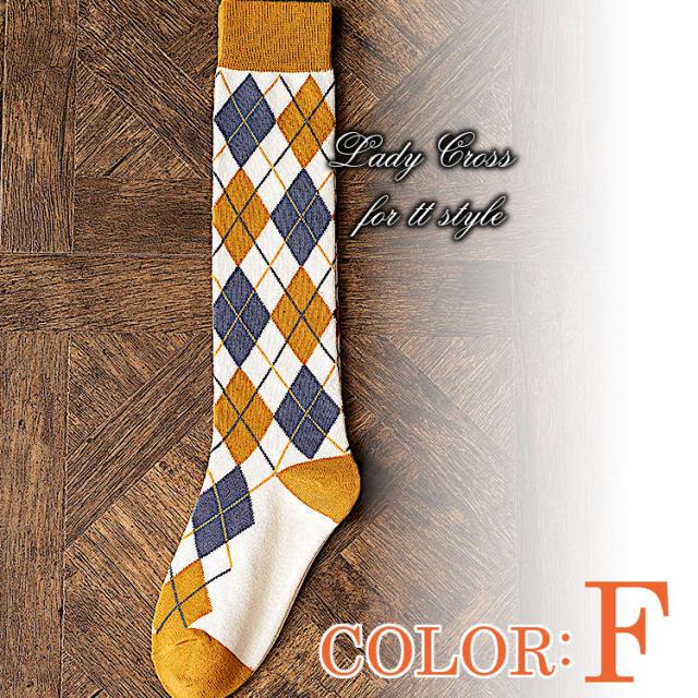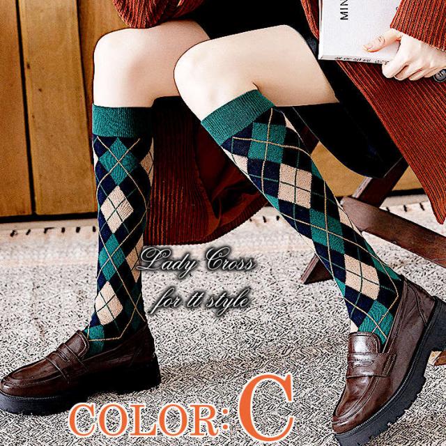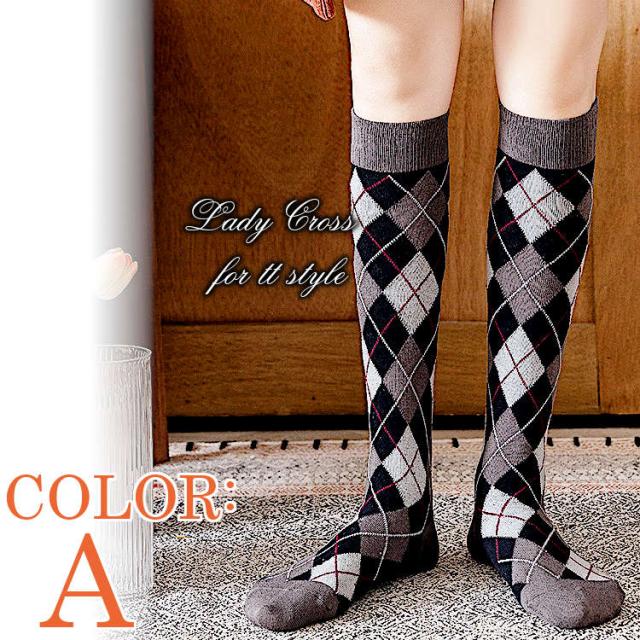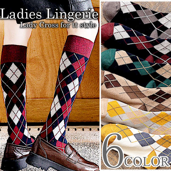 ハイソックス アーガイル柄 セクシー 靴下 ロング カラフル スタンダード レディース 美脚 高品質 6カラー 送料無料 ネコポス便