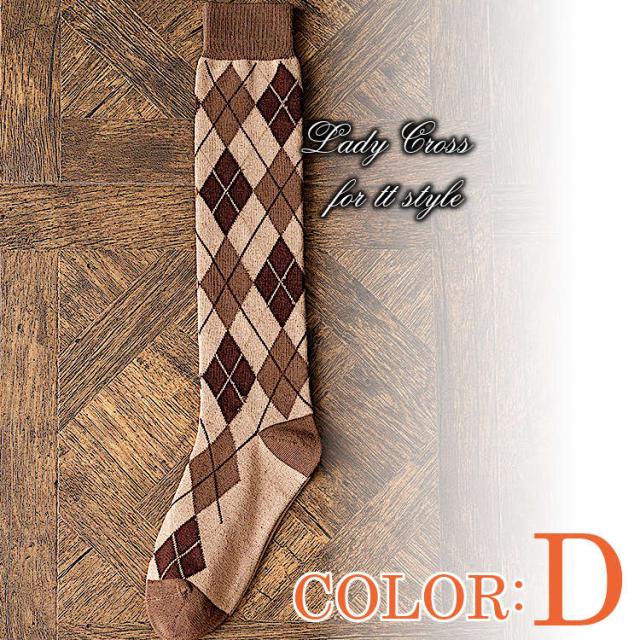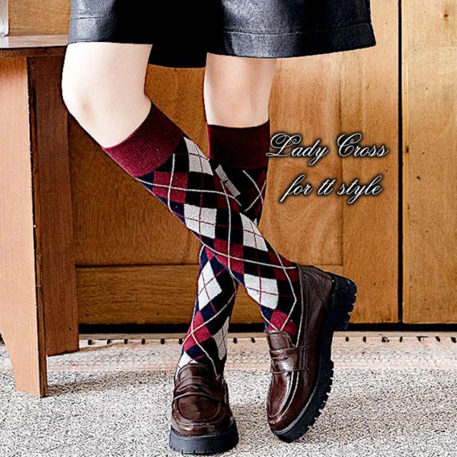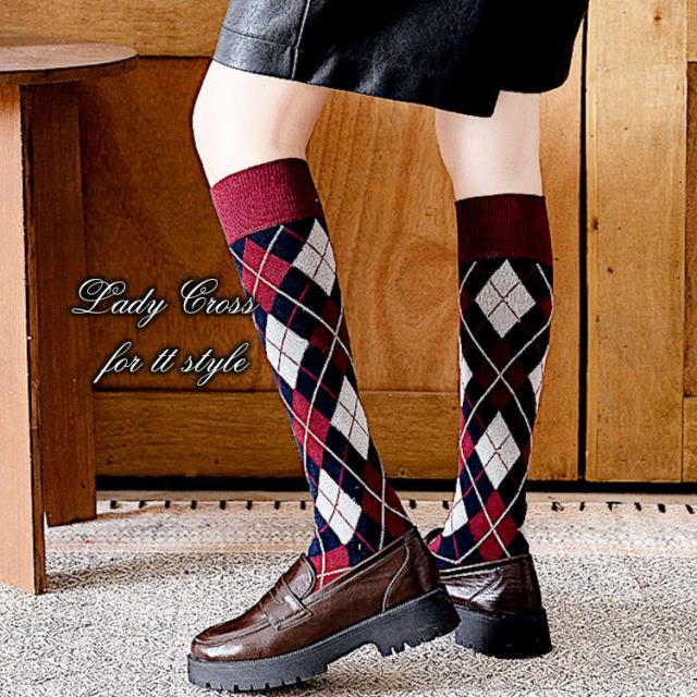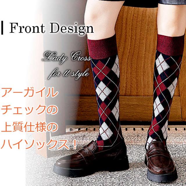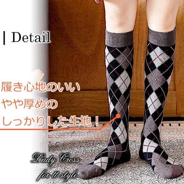 アーガイル(ダイヤ柄)デザインのハイソックス。