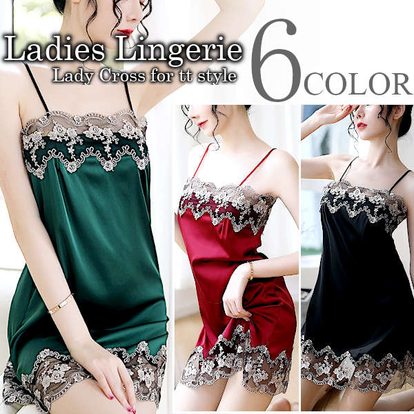 キャミソール セクシー ランジェリー スリップ 下着 かわいい 可愛い ワンピース セット レース ナイトウェア レディース インナー 7カラー 送料無料 ネコポス便
