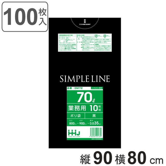 ゴミ袋 70L 90×80cm 厚さ0.035mm 10枚入 黒 GM72 メタロセン配合 10袋セット ( ポリ袋 ごみ袋 70リットル 100枚 ゴミ 袋 ブラック 縦90cm 横80cm ツルツル ポリエチレン キッチン リビング 消耗品 常備品 色付き )