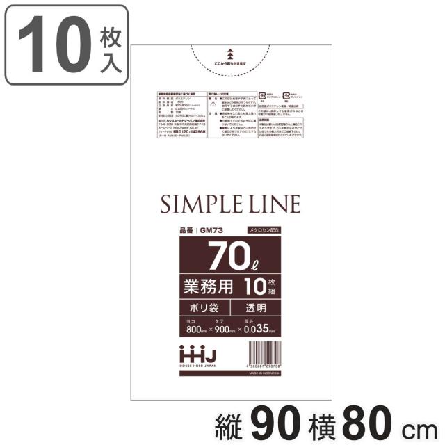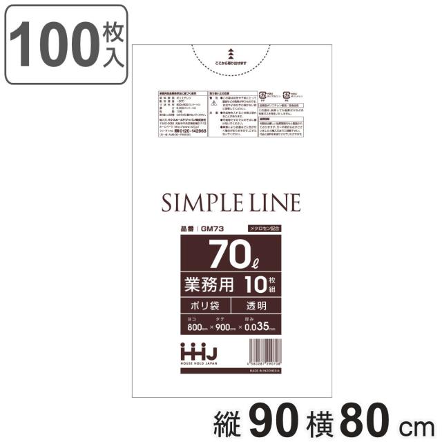 ゴミ袋 70L 90×80cm 厚さ0.035mm 10枚入 透明 GM73 メタロセン配合 10袋セット ( ポリ袋 ごみ袋 70リットル 10枚 ゴミ 袋 縦90cm 横80cm ツルツル ポリエチレン キッチン リビング 消耗品 常備品 )