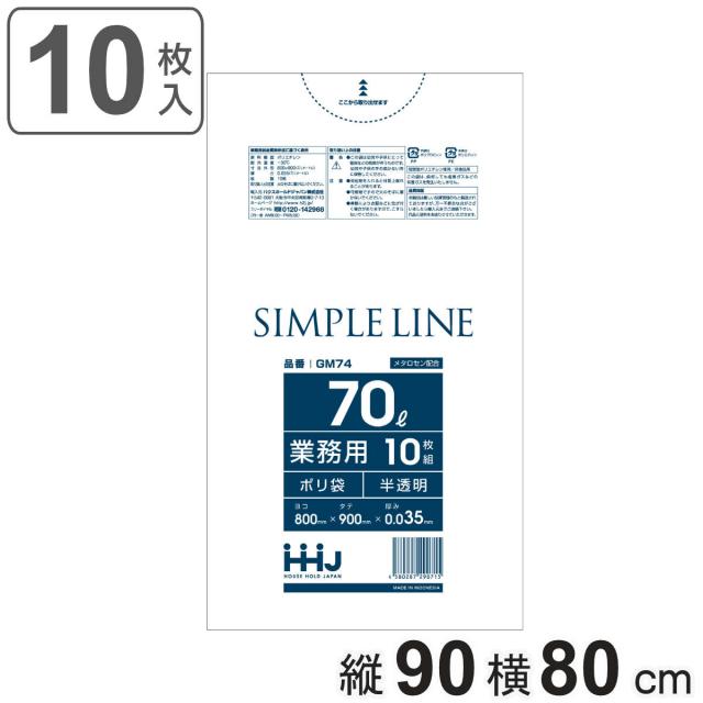 ゴミ袋 70L 90×80cm 厚さ0.035mm 10枚入 半透明 GM74 メタロセン配合 10袋セット ( ポリ袋 ごみ袋 70リットル 10枚 ゴミ 袋 縦90cm 横80cm ツルツル ポリエチレン キッチン リビング 消耗品 常備品 )