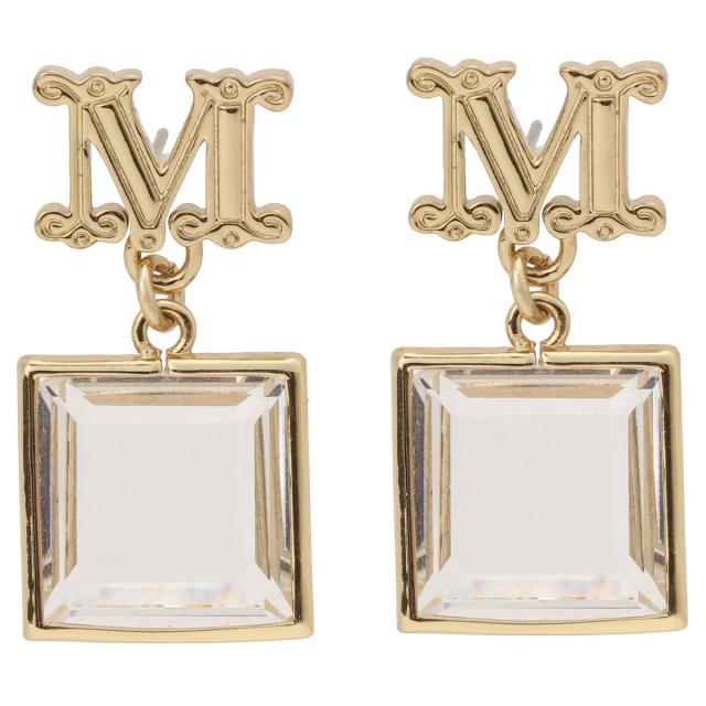 商品名:マックスマーラ Max Mara ピアス スタッドピアス アクセサリー 47560929600 001 apmr00002l EARRY04 Mロゴモチーフ メタル クリスタル ビジュー ゴールド+クリア