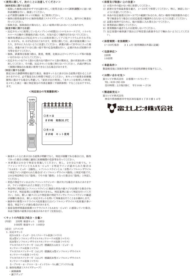 一般用SARSコロナウイルス抗原・インフルエンザウイルス抗原キット