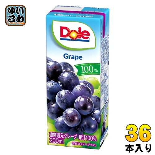 雪印メグミルク Doleグレープ100% 200ml 紙パック 36本 (18本入×2 まとめ買い) ぶどうジュース 濃縮還元