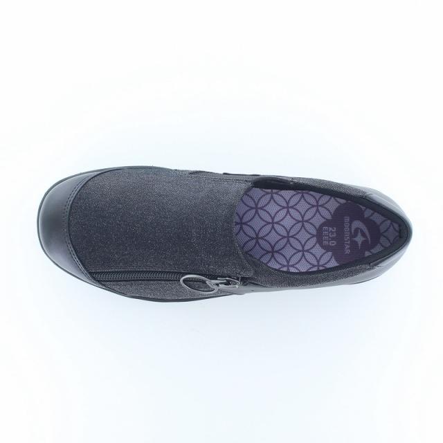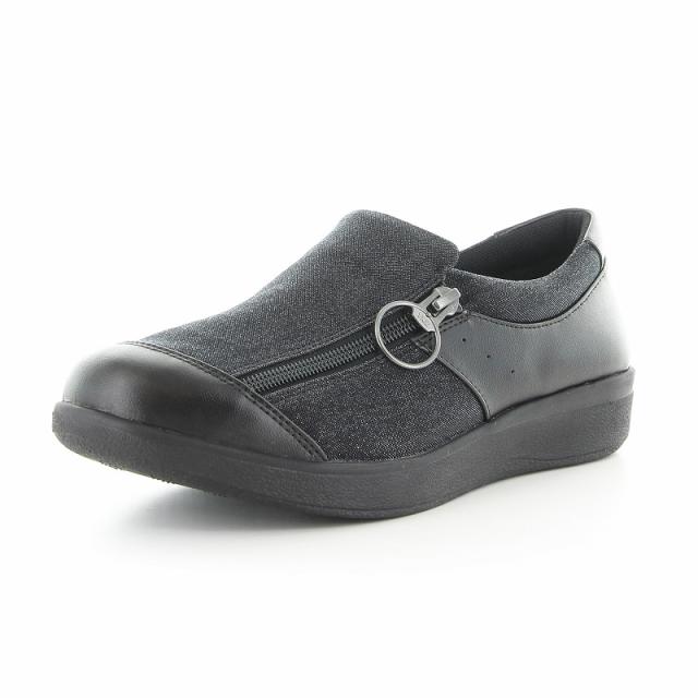 高齢者の加齢による足関節やひざ関節の機能低下を足の関節を無理に曲げることなく歩ける「ローリングアシスト機能」でサポートします。ソールの中に硬いローリングボードが入っているため、靴が屈曲せずに自然な体重移動を促し、前方へ進むチカラになります。【ワイド設計】幅広の方にも対応した4E設計です。【機能性カップインソール】やわらかい立体クッションでアーチを優しく支えます。【非対称カウンター】内側よりも外側が長いカウンターを搭載することで踵が外側に倒れるのを防ぎます。【Ag+抗菌防臭】銀イオンの抗菌作用でにおいのもととなる菌の増殖を抑制し、防臭効果を発揮します。天然由来成分で安全です。【つまずき防止】つまずきにくいアウトソール設計です。【軽量設計】ヒールの高さは3cmで、重量は23.0cmで片足約165gの軽量設計です。内側にはゴムがあり、ファスナーが大きく開くため脱ぎ履きが楽です。