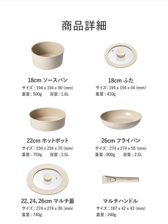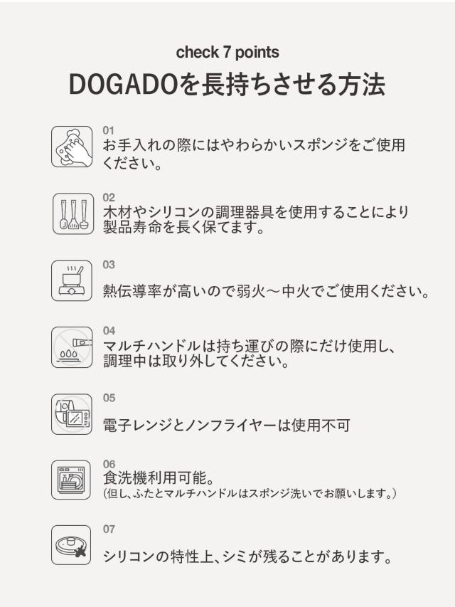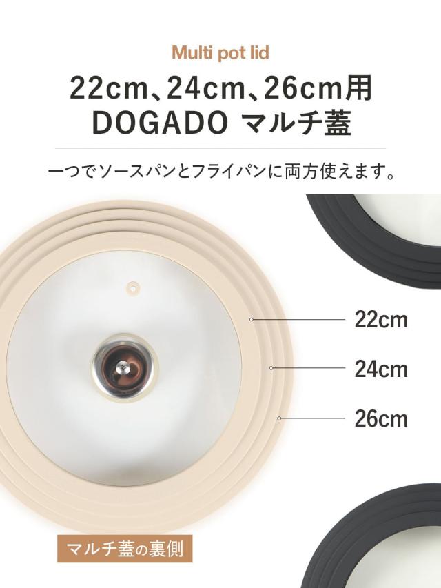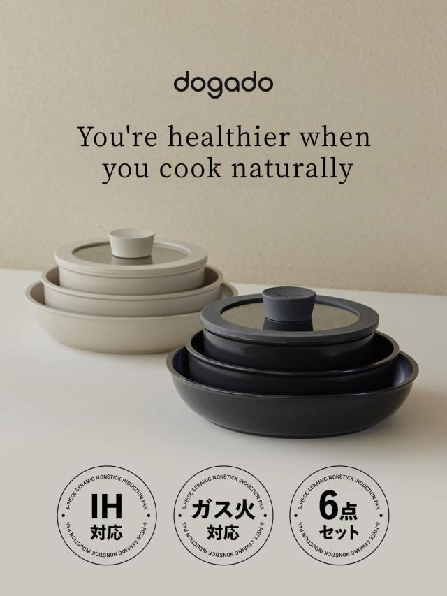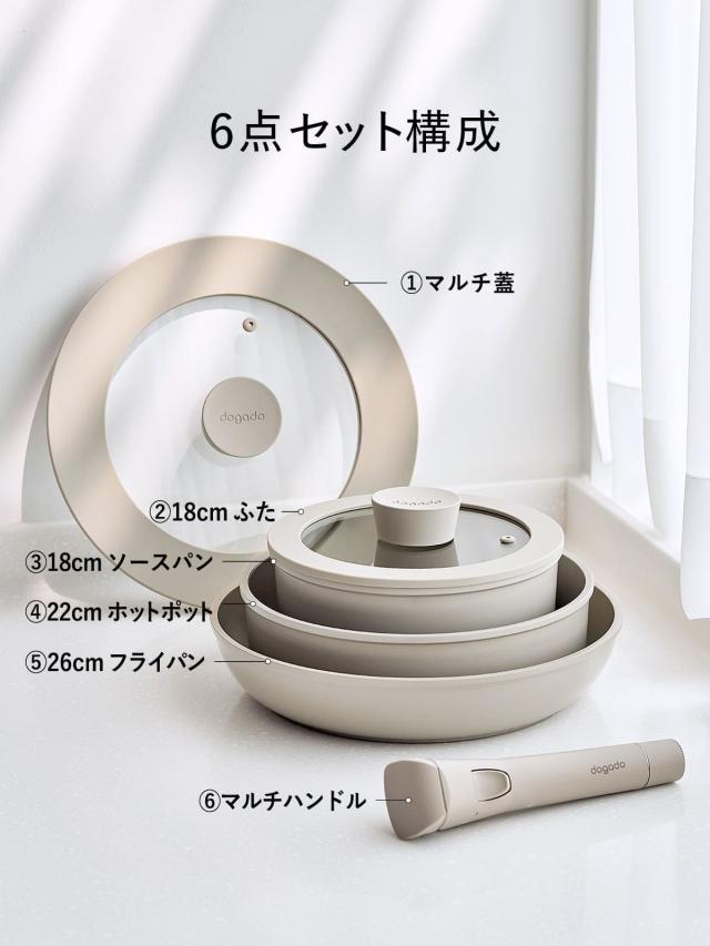 DOGADO ドガド フライパン 片手鍋 フタ 取っ手 6点セット 18cm 22cm 26cm IH対応 軽量 皿 セラミック