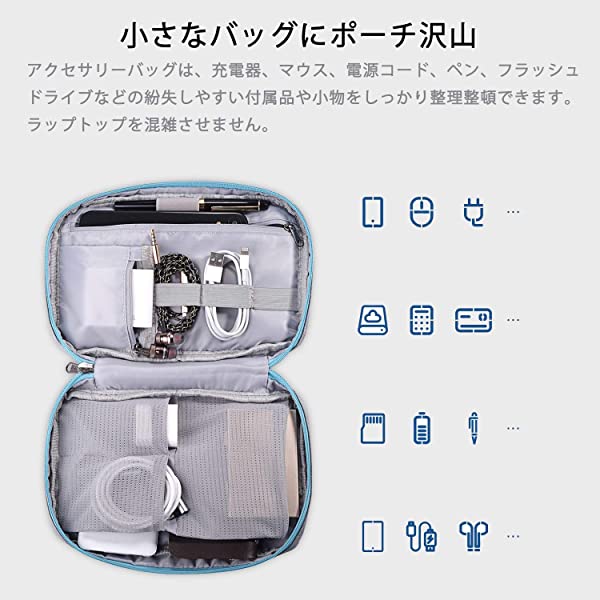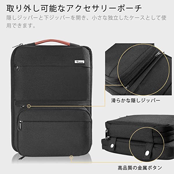 【アクセサリーポーチ付き】電源アダプタとマウス用に設計され、他の周辺機器も収納できます。外出の時にもっと便利になります。パソコンケースのジップと底部のボタンを開き、アクセサリーポーチは独立したのバッグとして使用できます。