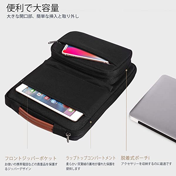 パソコンケース13 13.3 13.5インチ 衝撃吸収PCケース ノートパソコン ケース 取り外し可能な アクセサリーポーチ付き男女兼用パソコンカバン MacBook Air 13 2020 M1/2022 M2 MacBook Pro 13/14 2021 13.5' Surface Laptop 3/4 Surface Book 2/3 サーフェスラップトップ3/4 13.3.. (ブラック)