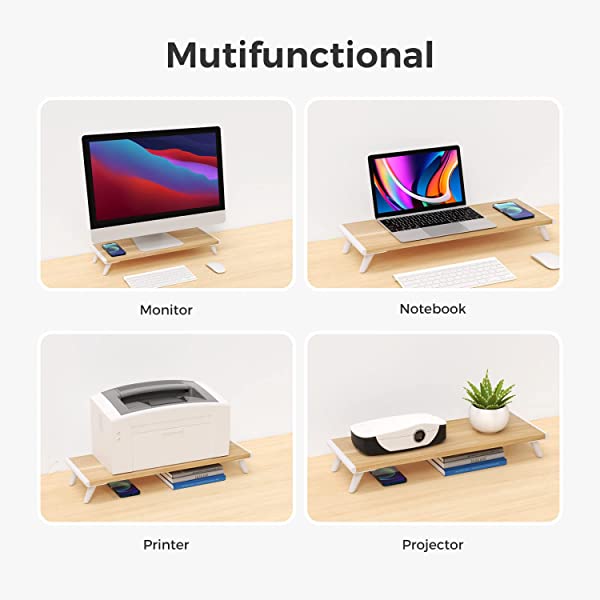 【多機能・スペース活用】モニターを置いたまま、iPadとステレオを置くことができます。台下にノートパソコンやiPadなどを収納することで、デスク上を広く使えます。ノートパソコン台、プリンター台、プロジェクタースタンドとしても幅広く利用できます。