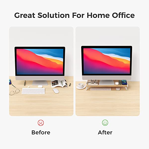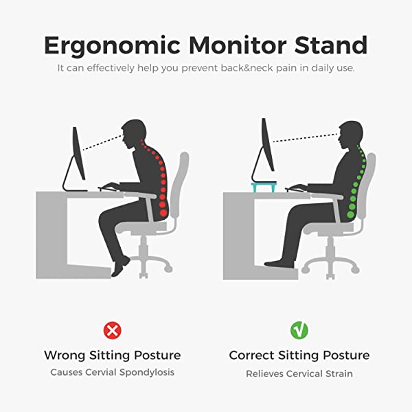 【健康保持】人間工学に基づくデザインで、モニターを8?p上げることで正しい姿勢を保つのに役立ちます。視線が自然に上がるため、背筋を伸ばすことができ、目の疲れや背中および頚椎の疲労を軽減できます。