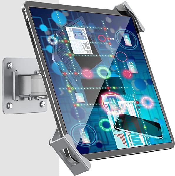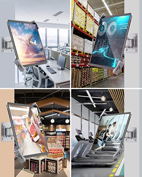 マルチアングル回転:ゴム製パッド付きの360°回転可能なブラケットは、デバイスのクッションに役立ちます。また、タブレットウォールマウントブラケットのジョイントは、水平方向と垂直方向に180度傾斜させて、さまざまな角度で画面を傾けることができます。お気に入りのタブレットを楽しむのに最適な