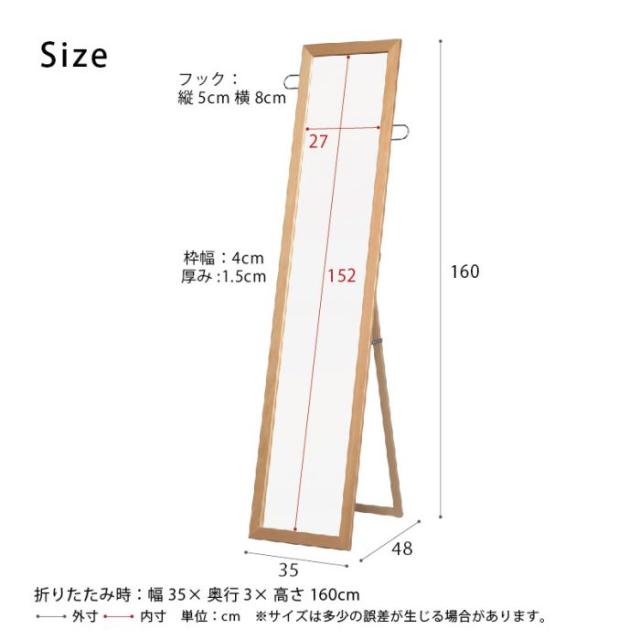 スタンドミラー 姿見 全身 スリム 鏡 幅35 薄型 フック 一人暮らし 日本製 木製 シンプル ハンガー付き リビング 大きい 自立 軽量 スタンド おしゃれ