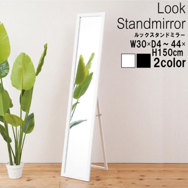 スタンドミラー 姿見 全身 スリム 鏡 幅30 薄型 一人暮らし シンプル リビング 大きい 自立 軽量 スタンド ホワイト ブラック 飛散防止 北欧 おしゃれ