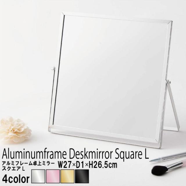 卓上ミラー 鏡 卓上 メイク 化粧 角度調整 シンプル 卓上鏡 コンパクト 四角 おしゃれ 化粧鏡 インテリア 手鏡 折りたたみ 北欧 高級感 スクエア アルミ