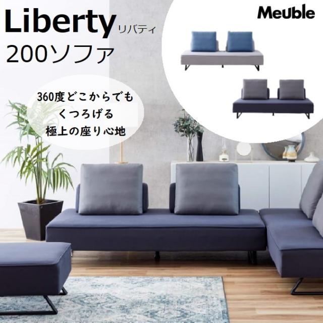 リバティ ソファ ソファベッド 200cm 3人掛 4人掛 3P 4P ごろ寝ソファ 360度 クッション付き Meuble 国産 布 ファブリック カウチソファ