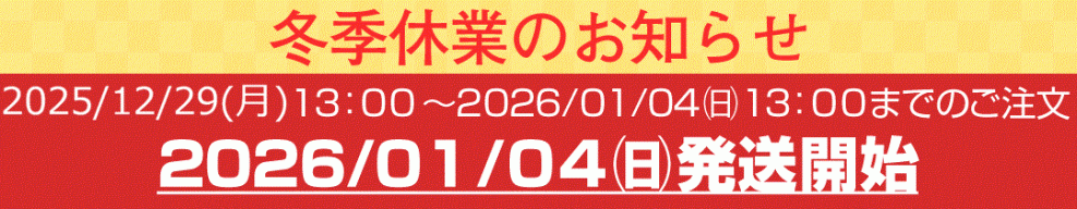 12/30(火)〜1/3(土)冬期休暇。休暇中のご注文は1/4(日)から順次発送