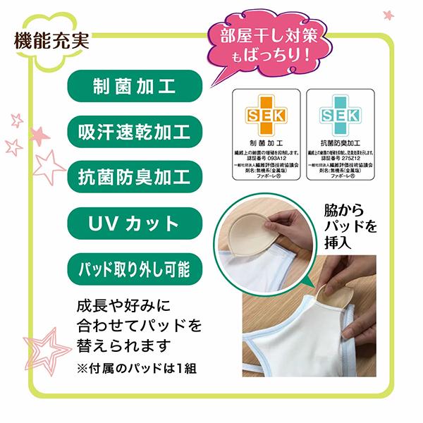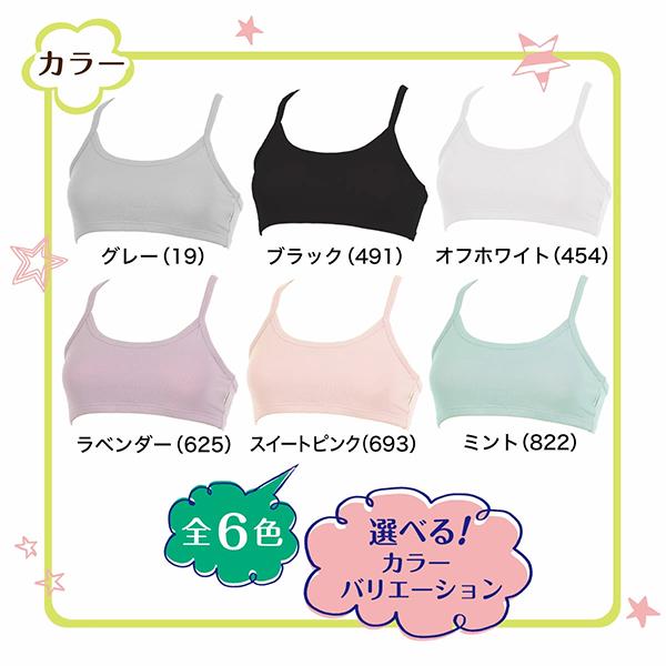 体育や部活、ダンスなどの習い事に最適!アクティブな小中学生の部活やスポーツに対応したインナーシリーズ。こだわりの素材と機能で、動きにしっかりフィット!かわいいカラーとシンプルなデザインで、アウター感覚で着れるので見えても気にらない♪バストトップが気になってきたお子様のはじめてブラや、普段使い、スクール用に幅広くご利用いただけます。便利な取り外しカップ付だから、ファーストブラにもおススメです♪