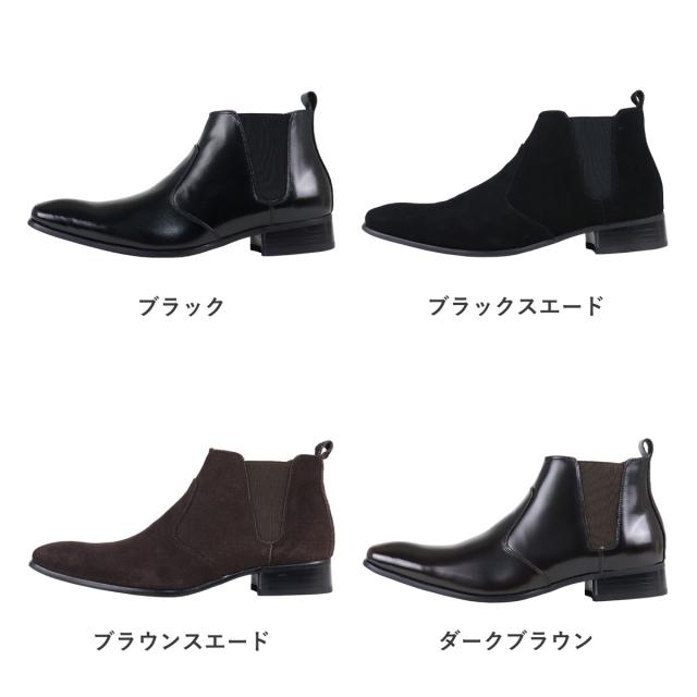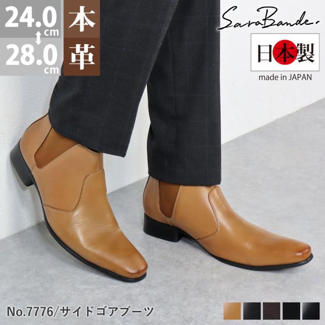 ビジネスブーツ 本革 メンズ 革靴 サイドゴアブーツ ショート丈 スエード ロングノーズ 通勤 カジュアル 3.5cmヒール No.7776 24.0cm-28.0cm 黒 SARABANDE サラバンド