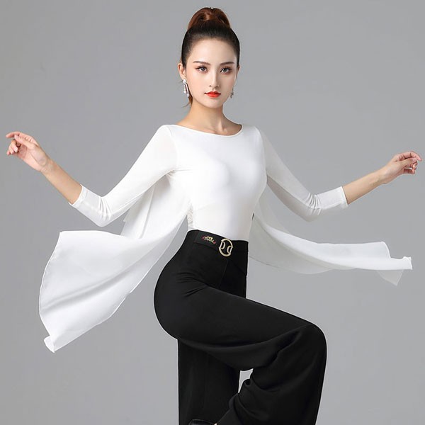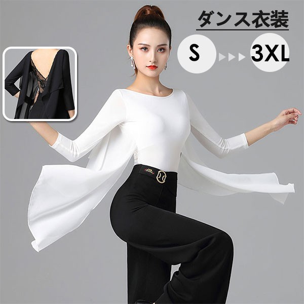 ラテンダンストップス 社交ダンス衣装 フレア トップス 上着 競技着 モダンラテンダンス用 ダンスウェア イベント カジュアルステージ衣装 ワルツ チャチャチャ ステージ 衣装 演出着 レディース 黒S M L XL 2XL 3XL dm046l9l9la