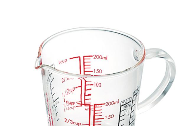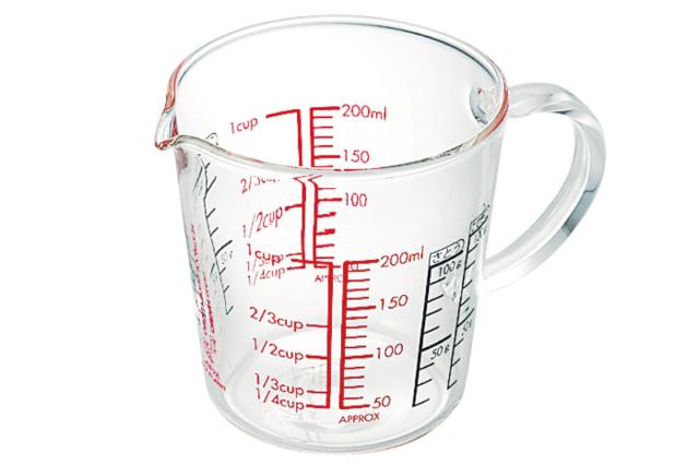 使いやすく液だれしにくいガラス製の計量カップ 200ml