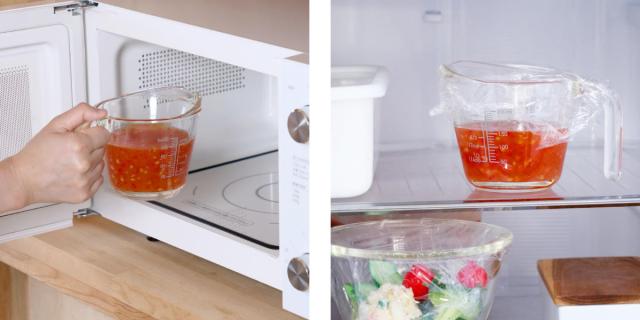 電子レンジやオーブンが使用できるので、使い勝手の幅が広がります。急激な温度変化に強く、ドレッシングなどを作る際に電子レンジを使い、出来上がったらそのまま冷蔵庫で保存することもできます。洗い物の減少や、時短にもつながります。