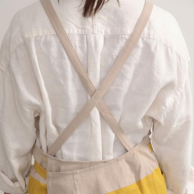 肌触りの良いバイカラーラップエプロン