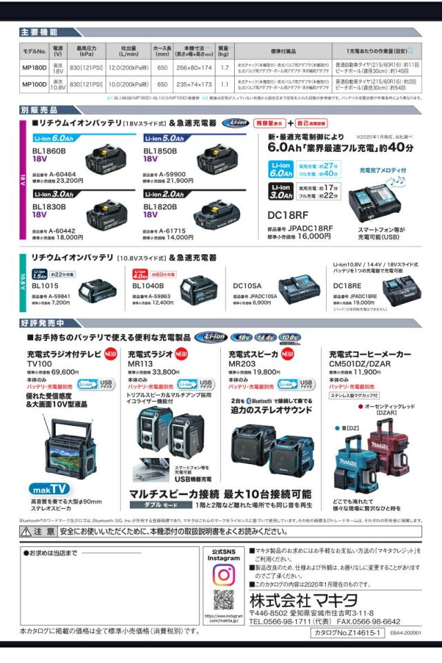 マキタ MP180DZ 充電式空気入れ 18V(本体のみ) ソフトケース 831276-6