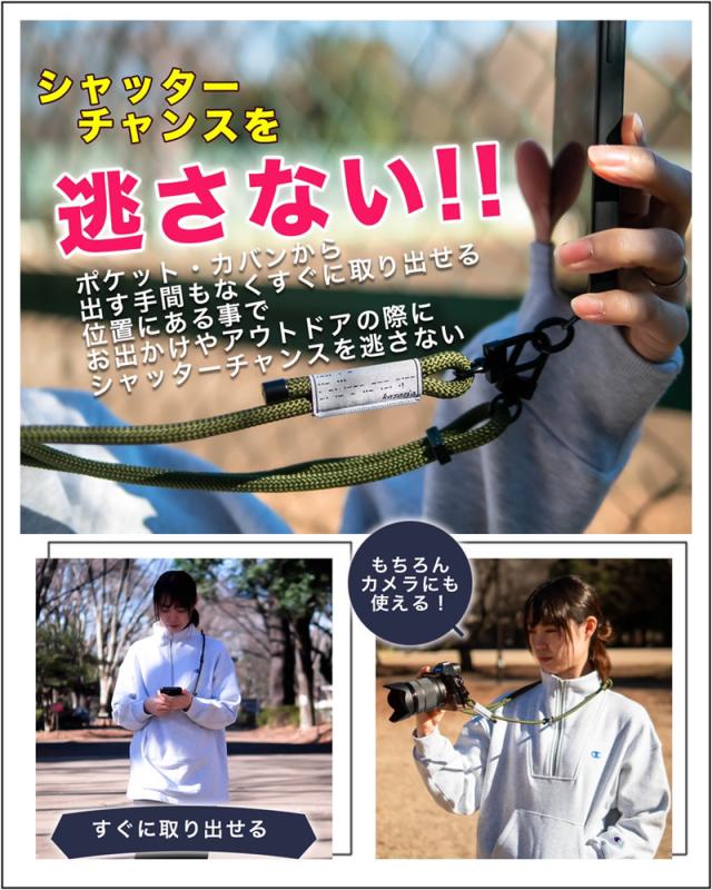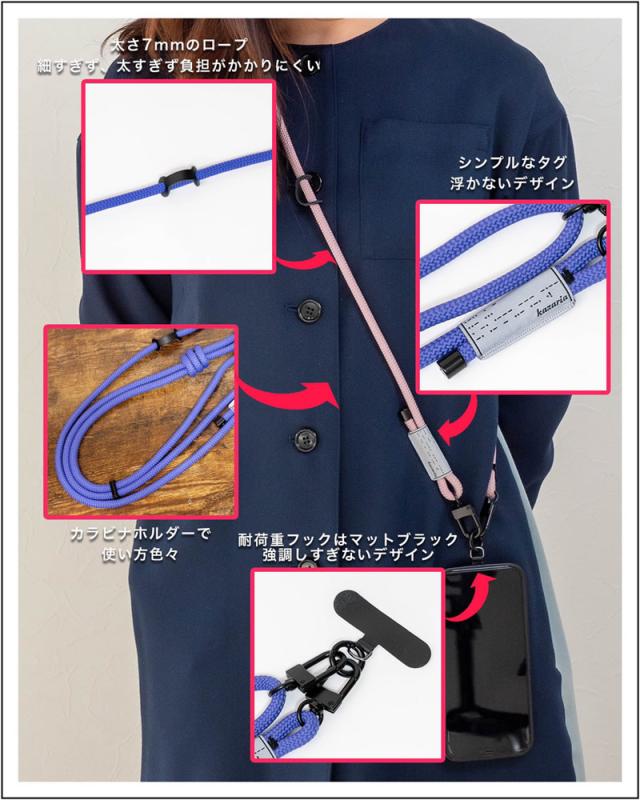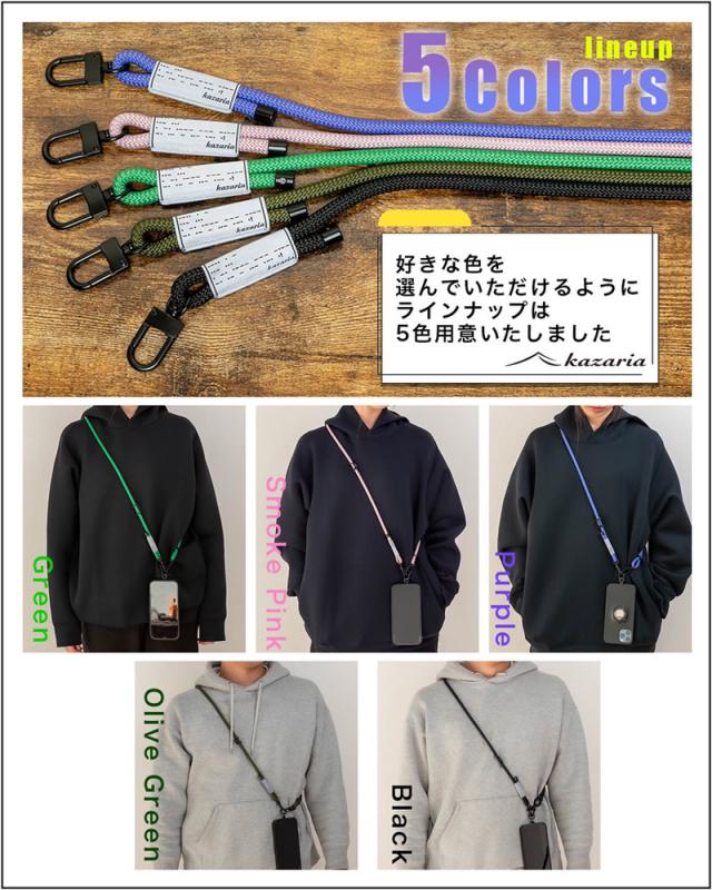 kazaria ネックストラップ (メール便送料無料) スマホ ショルダー ストラップ お洒落 携帯 カメラ 肩掛け 首掛け ハンズフリー アクセサリー ライト サコッシュ 鍵 社員証ケース USB かばん 旅行 散歩 宿泊 キャンプ カラビナホルダー