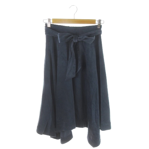 【中古】カージュ Khaju スカート コーデュロイ フレア ミモレ ロング ヘムライン リボン 薄手 紺 ネイビー /AO25