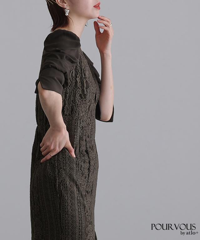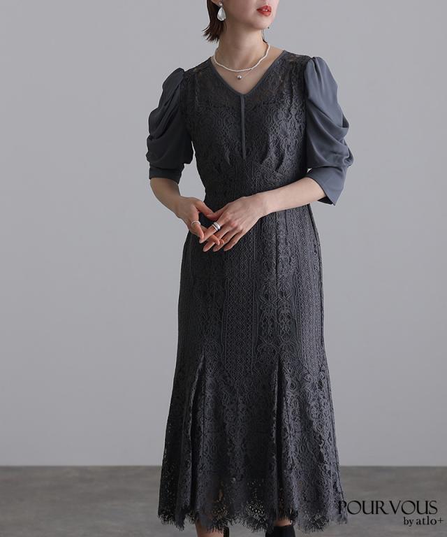 443222238 パーティードレス ワンピース 結婚式 大きいサイズ ドレス 体型カバー フォーマルドレス 小さいサイズ フォーマル お呼ばれ 顔合わせ 上品 韓国 20代 30代 40代 春 夏 秋 冬 服装 服 着痩せ 低身長 半袖 七分袖 袖あり 袖付き 袖 総レース レース ロング丈 マキシ