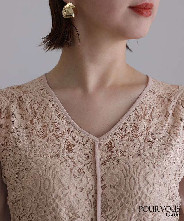 Vネックのネックラインでデコルテ部分を美しく見せてくれます。