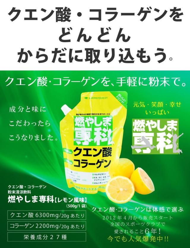 燃やしま専科 500g レモン風味 スポーツドリンク 粉末 パウダー 粉 クエン酸 ドリンク ダイエット サプリメント マルチビタミン 500ml 送料無料