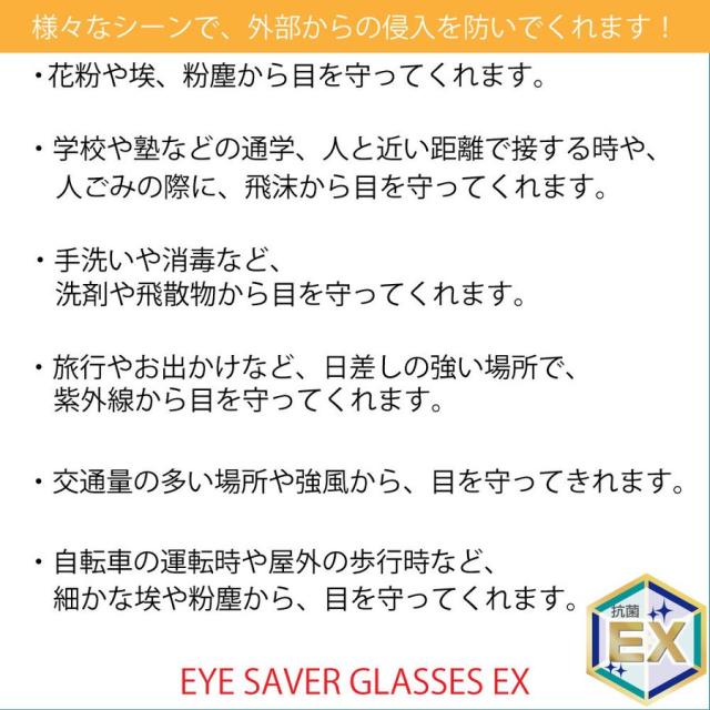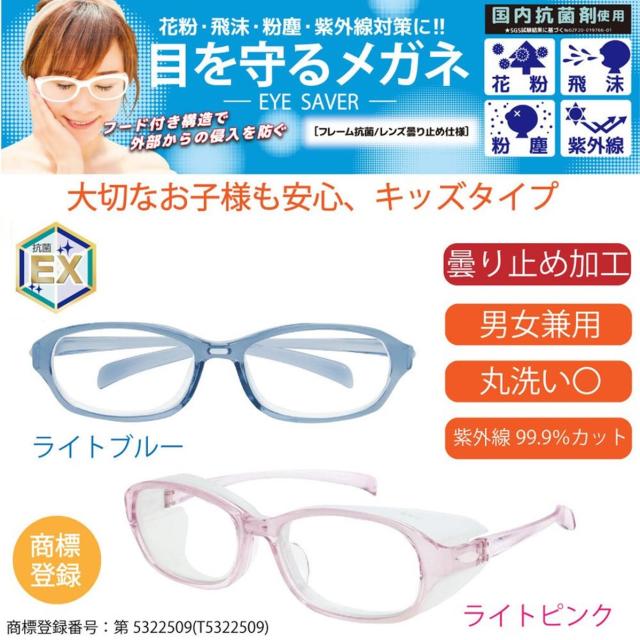 花粉 対策 メガネ 眼鏡 ゴーグル 抗菌 花粉症 粉塵 飛沫 紫外線 対策 通学 男女兼用 丸洗い アイセーバーグラスEX キッズタイプ SE-927 送料無料